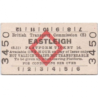 Platform Ticket, BTC (S), Eastleigh, 1d, Series 51, Serial No 3450