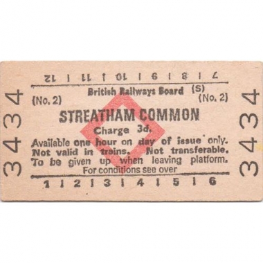 Platform Ticket, BRB (S), Streatham Common, 3d, Serial No 3434