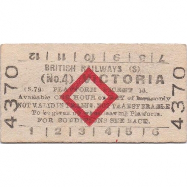 Platform Ticket, BR (S), Victoria, 1d, Series 79, Serial No 4370
