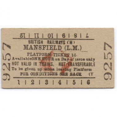 Platform Ticket, BR (M), Mansfield (L.M.), 1d, Series T, Serial No. 9257