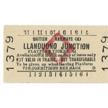 Platform Ticket, BR (M), Llandudno Junction, 1d, Serial No 1379