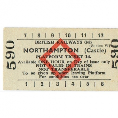 Platform Ticket, BR (M), Northampton (Castle), 1d, Series W, Serial No 590