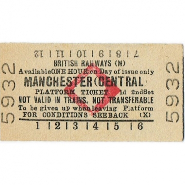 Platform Ticket, BR (M), Manchester (Central), 1d, Serial No 5932