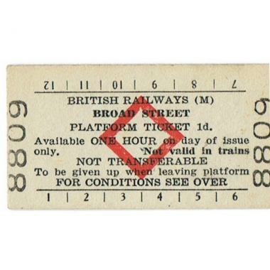 Platform Ticket, BR (M), Broad Street, 1d , Serial No 8809