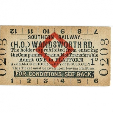 Platform Ticket, SR, Wandsworth Road, 1d, Serial No 0203