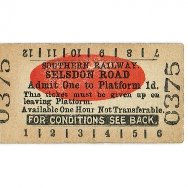 Platform Ticket, SR, Selsdon Road, 1d, Serial No 0375