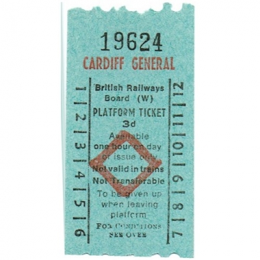 Platform Ticket, BRB(W), Cardiff General, 3d, Serial No 19624