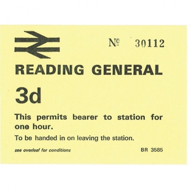 Platform Ticket, BRB(W), Reading General, 3d, Serial No 30112