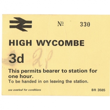 Platform Ticket, BRB(W), High Wycombe, 3d, Serial No 330