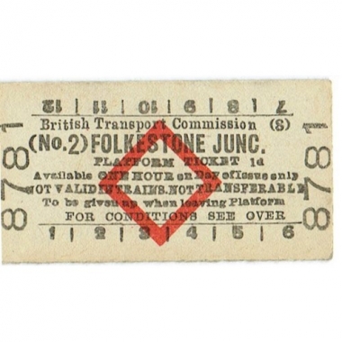 Platform Ticket, BTC(S), Folkestone Junction, 1d, Serial No 8781