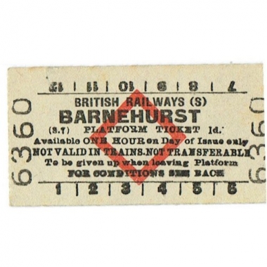 Platform Ticket, BR(S), Barnehurst,1d, Serial No 6360