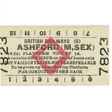 Platform Ticket, BR(S), Ashford (M,sex), 1d, Series 20, Serial No 7823
