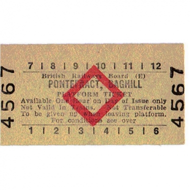 Platform Ticket, BRB(E), Pontefract, Baghill, Serial No 4567