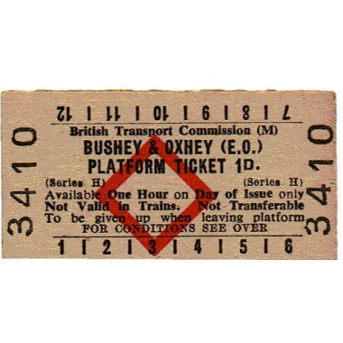 Platform Ticket, BTC(M), Bushey & Oxhey (E.O.), 1d, Serial No 3410