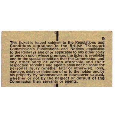 Platform Ticket, BTC (M), London (Broad Street), 1d, Serial No 9583