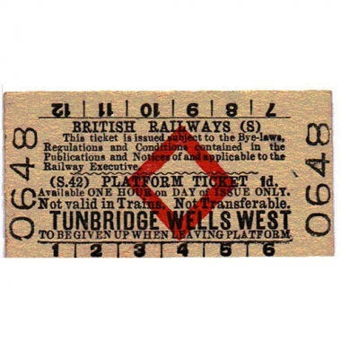 Platform Ticket, BR(S), Tunbridge Wells West, 1d, Serial No 0648