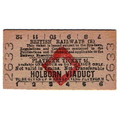 Platform Ticket, BR (S), Holborn Viaduct, 1d, Serial No 2633