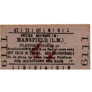 Platform Ticket, BR(M), Mansfield (LM), 1d, Serial No. 6111