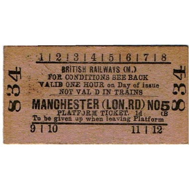 Platform Ticket, BR(M), Manchester (London Road), 1d, Serial No. 834