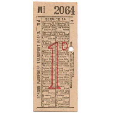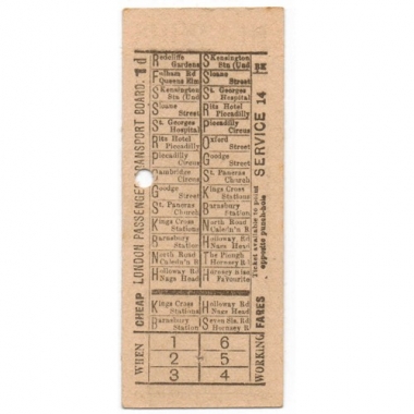 Road Ticket, London Passenger Transport Board, Service 14, 1d