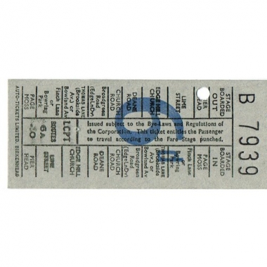 Bus Ticket, LCPT, Pier Head, 6d, Serial No B7939