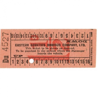 Bus Ticket, Eastern Counties Omnibus Co Ltd, 1 1/2d, Advert: Self Advert, Serial No Du4527