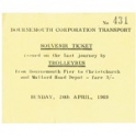 Bus/Trolley Bus Ticket, BCT, Souvenir Ticket, Bournemouth Pier - Christchurch, Serial No 431