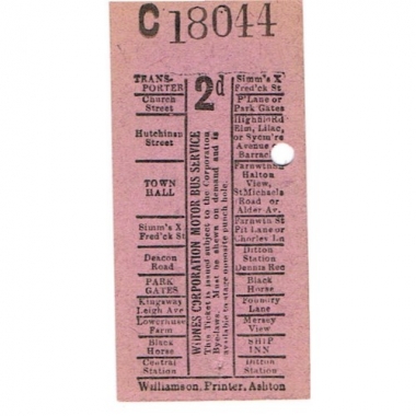 Bus Ticket, Widnes Corp Motor Bus, 2d, Serial No 18044