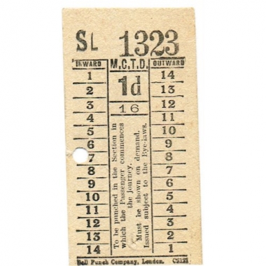 Bus Ticket, MCTD, 1d, Advert: Holdens, Serial No 1323