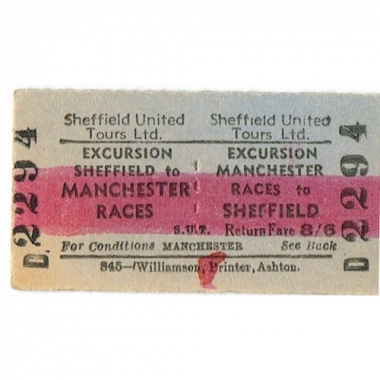 Travel Ticket, Sheffield United Tours Ltd., Excursion, Manchester Races to Sheffield, Serial No 2294