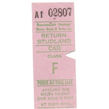 Water Ticket, Bournemouth Swanage Motor Road & Ferry Co, Return Studland, Car Ferry, Serial No 02807