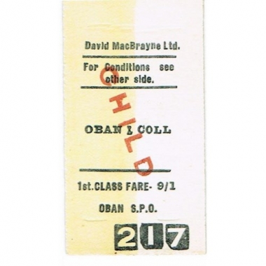 Water Ticket, David MacBrayne, Oban - Coll, Serial No 217