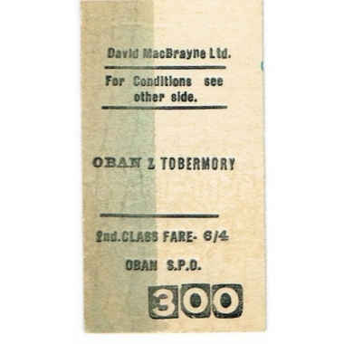 Water Ticket, David MacBrayne, Oban - Tobermory, Serial No 300