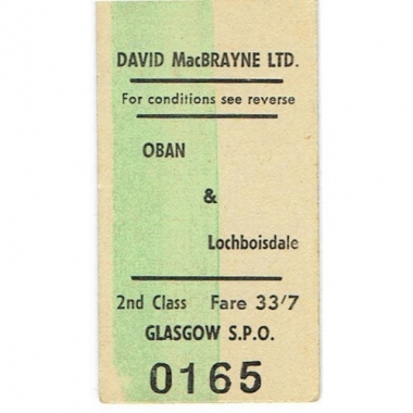 Water Ticket, David MacBrayne, Oban - Lochboisdale, Serial No 0165