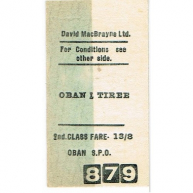 Water Ticket, David MacBrayne, Oban - Tiree, Serial No 879