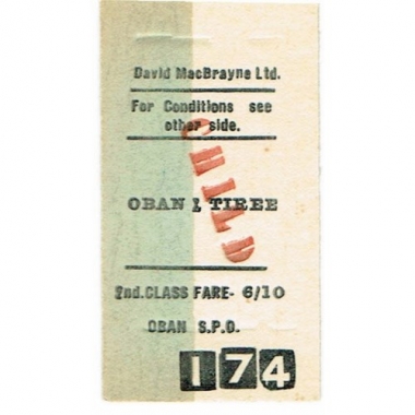 Water Ticket, David MacBrayne, Oban - Tiree, Serial No 174