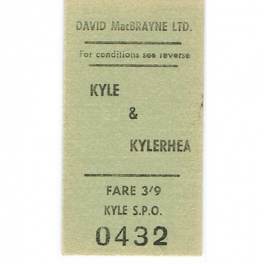 Water Ticket, David MacBrayne, Kyle - Kylerhea, Serial No 0432