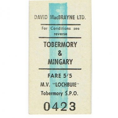 Water Ticket, David MacBrayne, Tobermory - Mingary, Serial No 0423