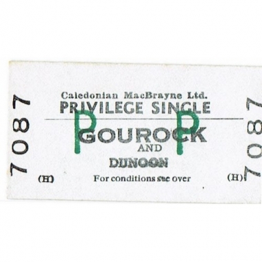 Water Ticket, Caledonian MacBrayne, Gourock - Dunoon, Serial No 7087