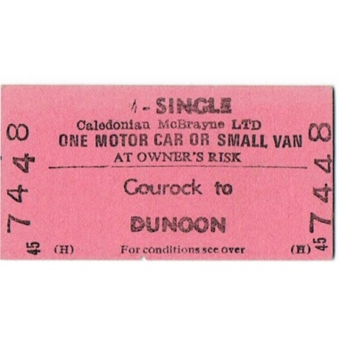 Water Ticket, Caledonian MacBrayne, Gourock - Dunoon, Motor Car or Small Van, Serial No 7448