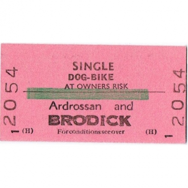 Water Ticket, Caledonian MacBrayne, Ardrossan - Brodick, Dog or Bike, Serial No 2054