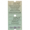 Water Ticket, Westminster Passenger Services Association, Greenwich, Serial No 09747
