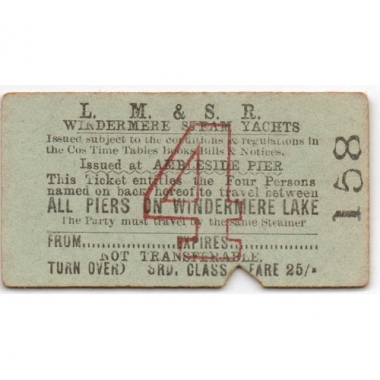 Water Ticket, LM&SR, Windermere Steam Yachts, All Piers on Windermere Lake, Serial No. 158