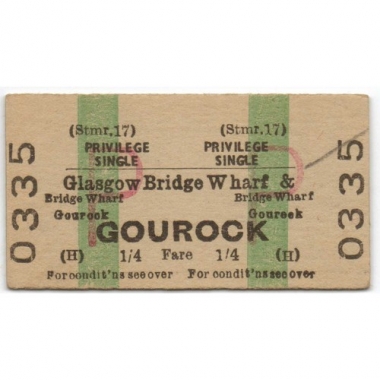 Water Ticket, Caledonian Steam Packet, Glasgow Bridge Wharf - Gouroch, Serial No. 0335