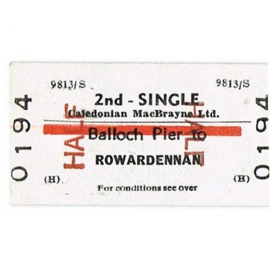 Water Ticket, Caledonian Macbrayne Ltd., Balloch (Pier) - Rowardennan, Serial No 0194