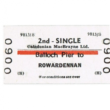 Water Ticket, Caledonian Macbrayne Ltd., Balloch (Pier) - Rowardennan, Serial No 0060
