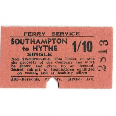 Water Ticket, Whitehorse Ferries, Southampton - Hythe, 1/10, Serial No 2813