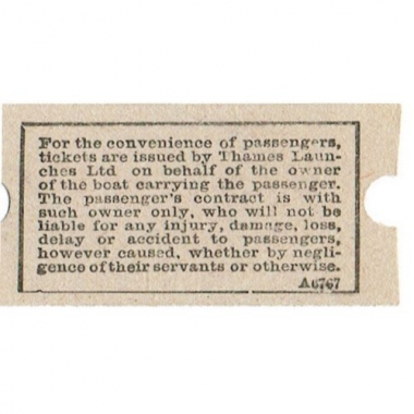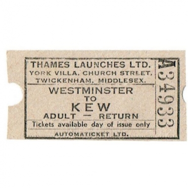 Water Ticket, Thames Launches Ltd, Westminster - Kew, Serial No 34933