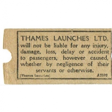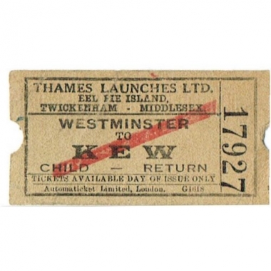 Water Ticket, Thames Launches Ltd, Westminster - Kew, Serial No 17927