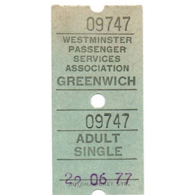 Water Ticket, Westminster Passenger Services Association, Greenwich, Serial No 09747